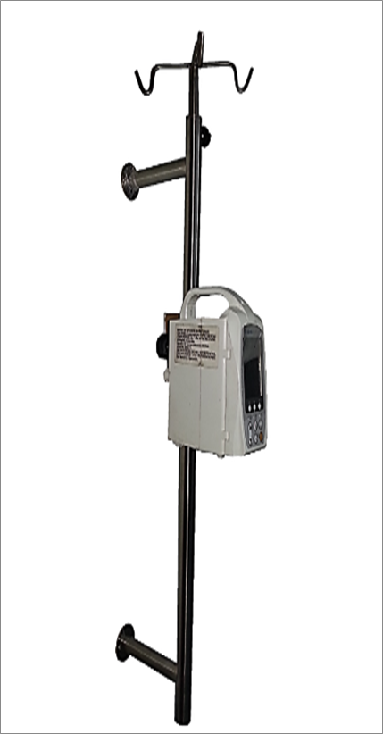 Fabricado en tubo redondo de 1 1/4″ C.18 en acero inoxidable con agarre para bomba de infusión.