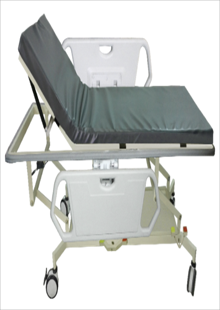 Tendido con cabecero de levante de sistema neumático en lámina cold rolled C. 22, con borde en bocel de caucho que amortigua y protege la camilla.