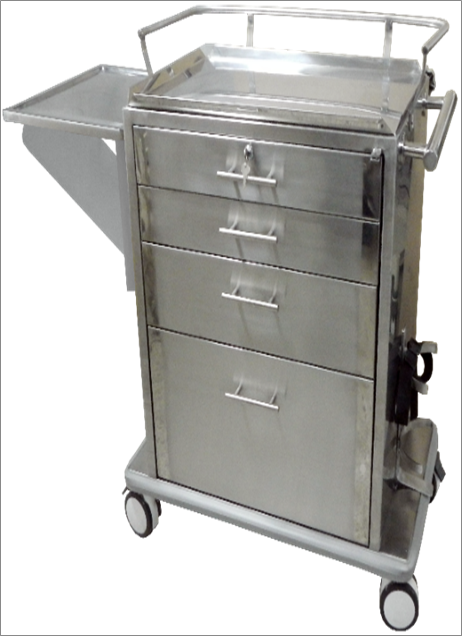 4 ruedas de 4” antibacterial, 2 con freno para asegurar después del desplazamiento.