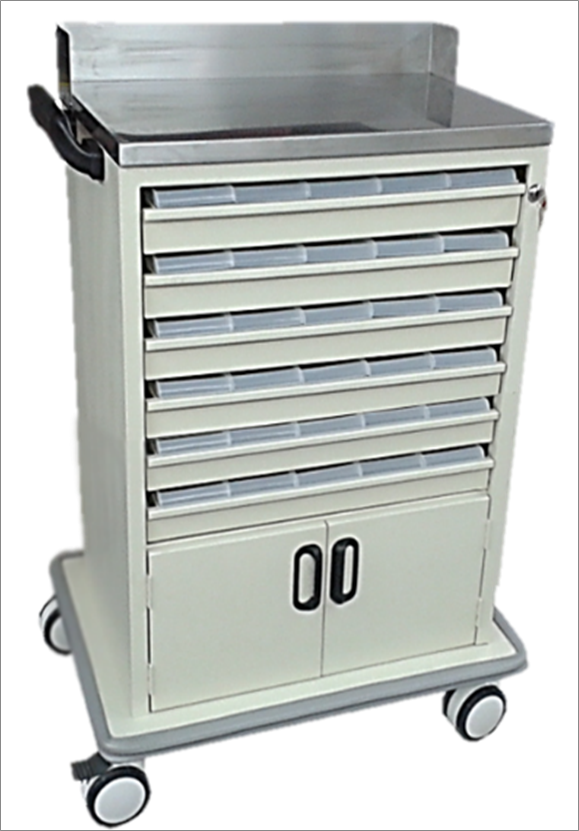 4 ruedas de 4” doble carril antibacterial, 2 con freno para asegurar después del desplazamiento.